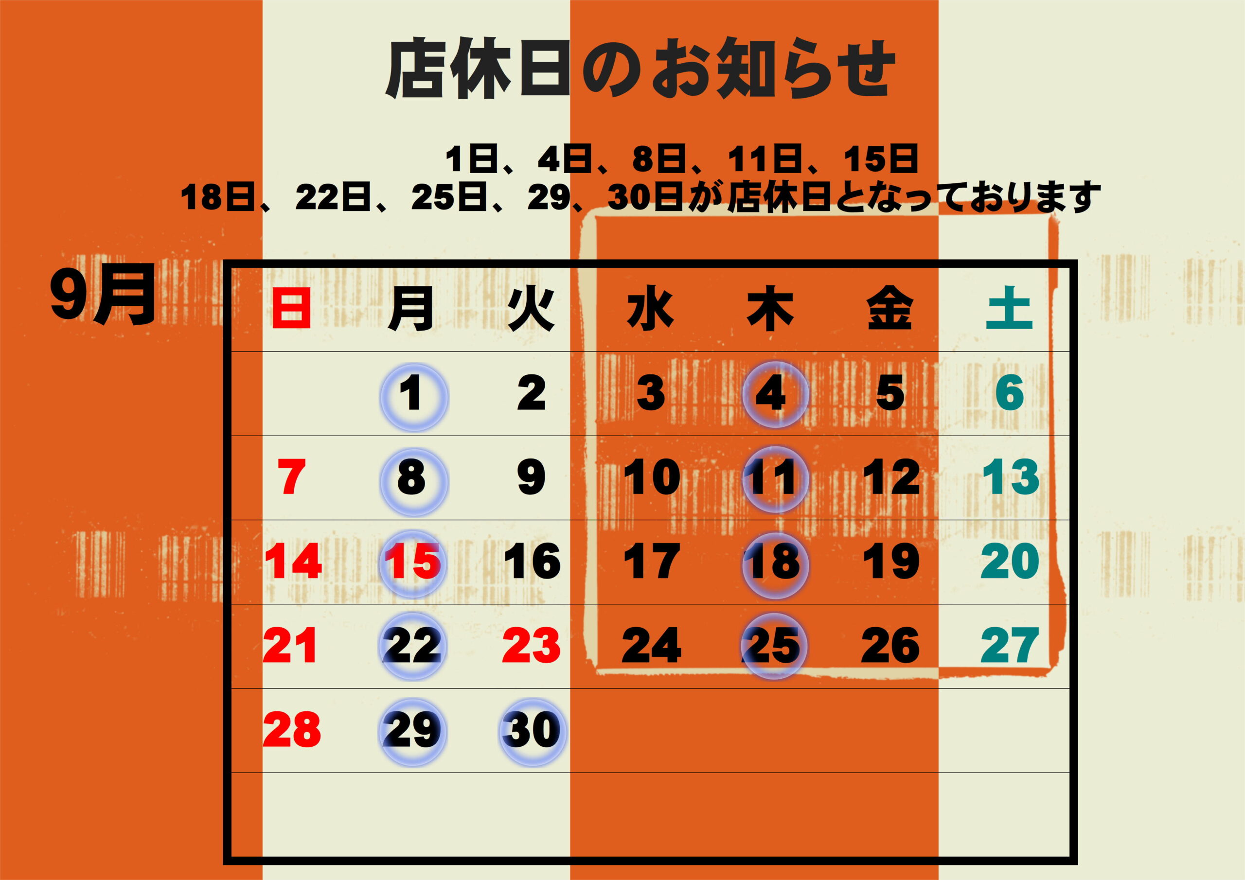 9月カレンダー